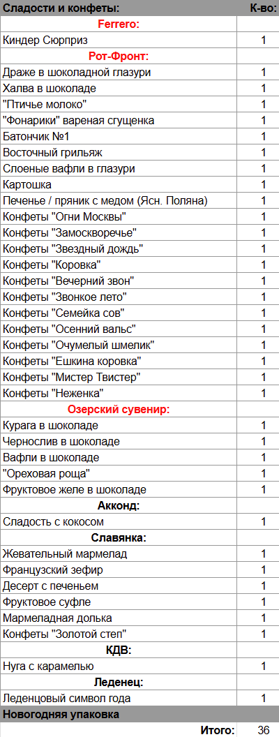 Кол-во сладостей: 36 штук